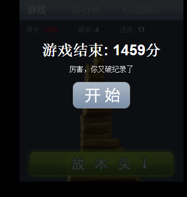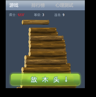 今天要来分享一款很经典的HTML5游戏——堆木头游戏,这款游戏的玩法是将木头堆积起来,多出的部分将被切除,直到下一根木头无法堆放为止。这款HTML5游戏的难点在于待堆放的木头是移动的,因此需要你很好的控制木头下落的位置。